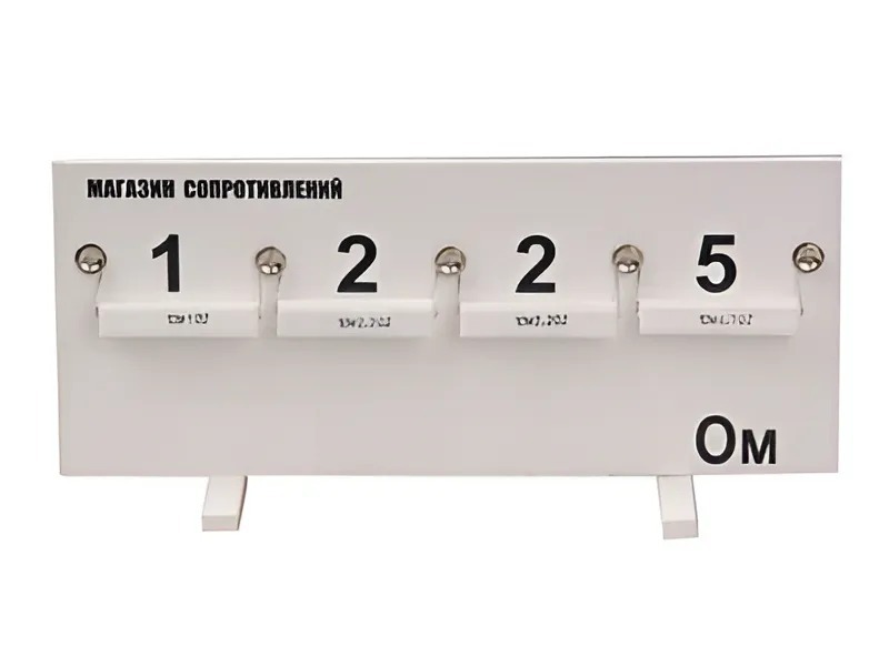 Магазин резисторов на панели предназначен для демонстрации устройства и действия штепсельного магазина резисторов. Магазин может служить эталоном в ряде демонстрационных установок при изучении законов электрического тока.