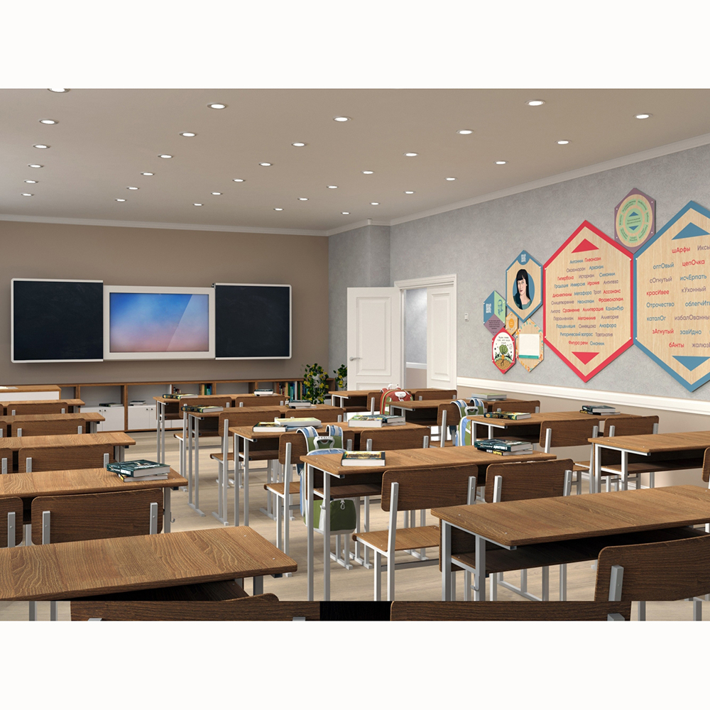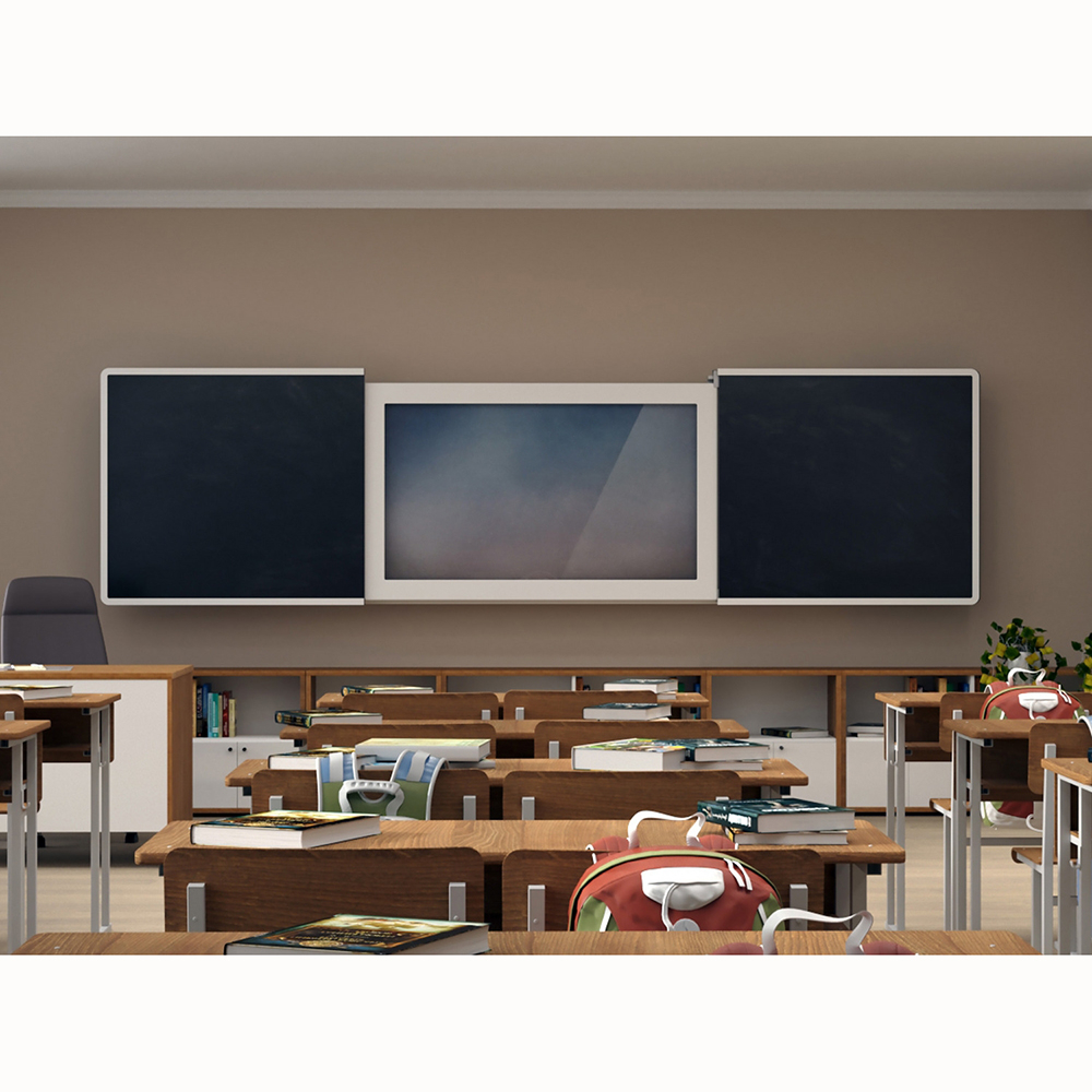 Современная школьная доска, сочетающая пишущую магнитно-меловую поверхность и интерактивный экран со встроенным компьютером. Раздвижная конструкция доски «Фибоначчи» позволяет трансформировать рабочую зону по желанию преподавателя, и совмещать традиционные занятия от руки с инновационными инструментами в образовании. Подходит для оснащения школ, учреждений культуры, детских кружков, развивающих и коррекционных центров для детей.