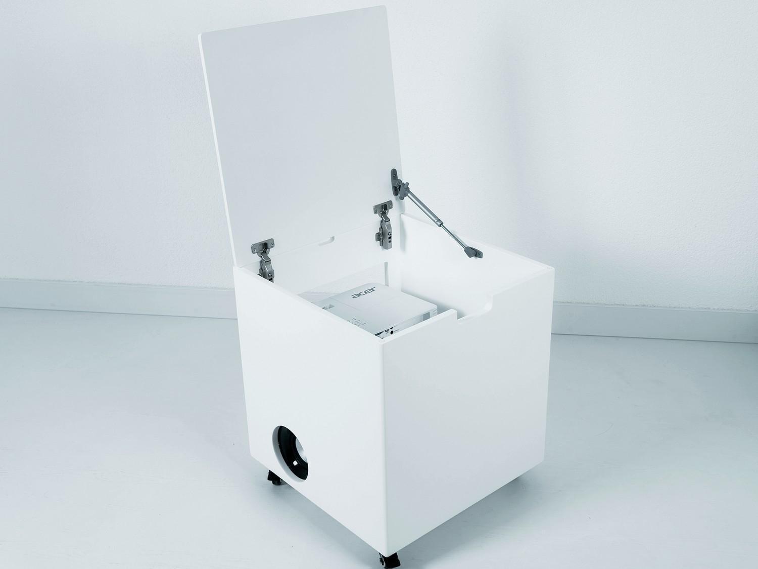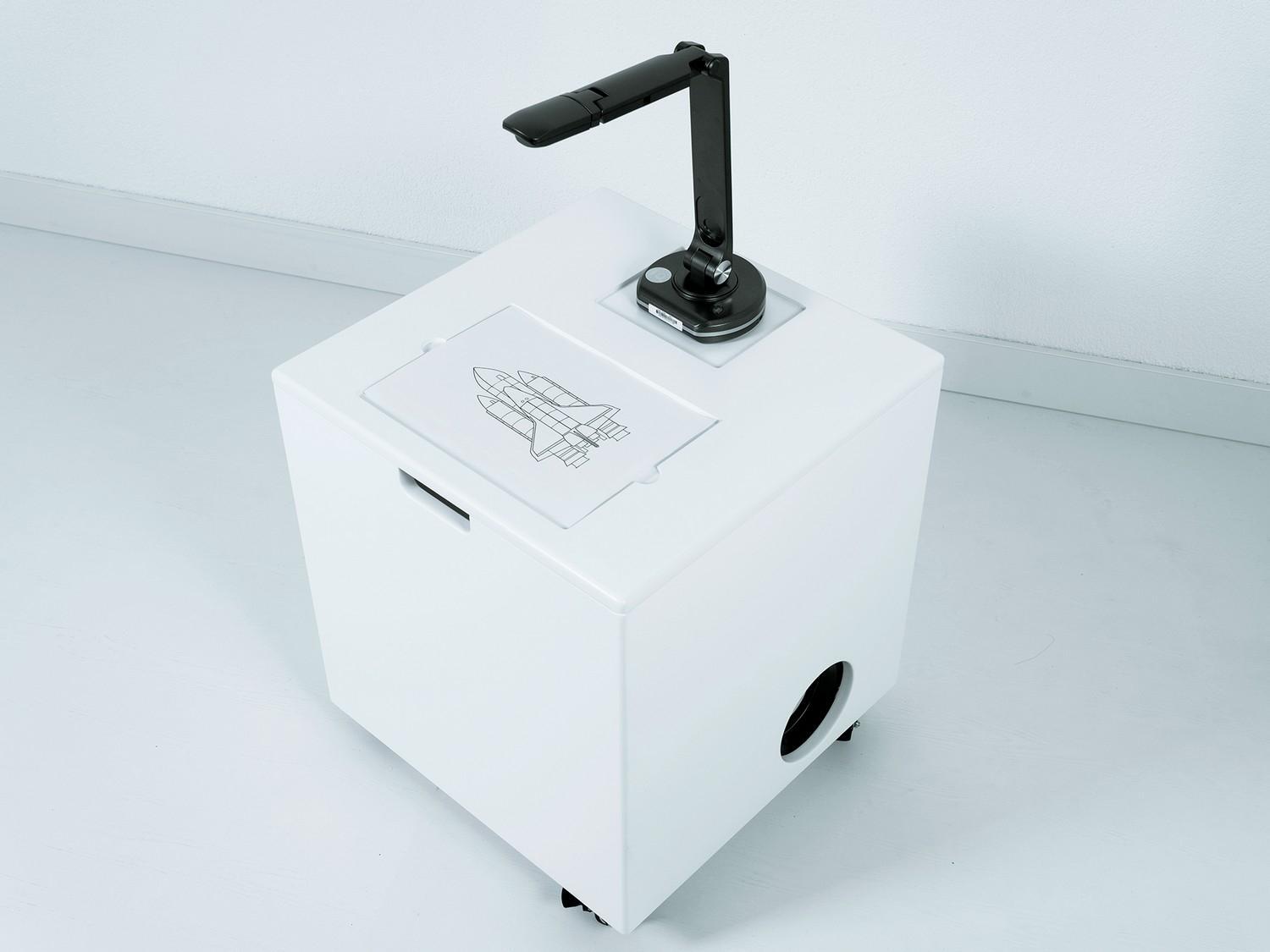 Благодаря подвижной платформе и компактным размерам оборудование легко перемещать между помещениями, а яркий проектор позволяет выводить изображение на различные поверхности.