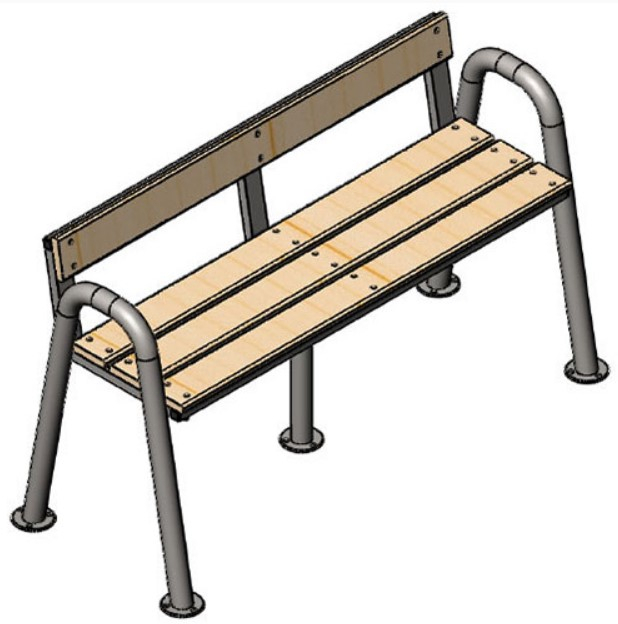 Скамейка выполнена из нержавеющей стали Aisi-304 и лиственницы.