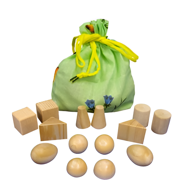 Представляет собой набор из 12 деревянных геометрических тел (куб, шар, эллипсоид, цилиндр, усеченный конус, полусфера), изготовленных из дерева.