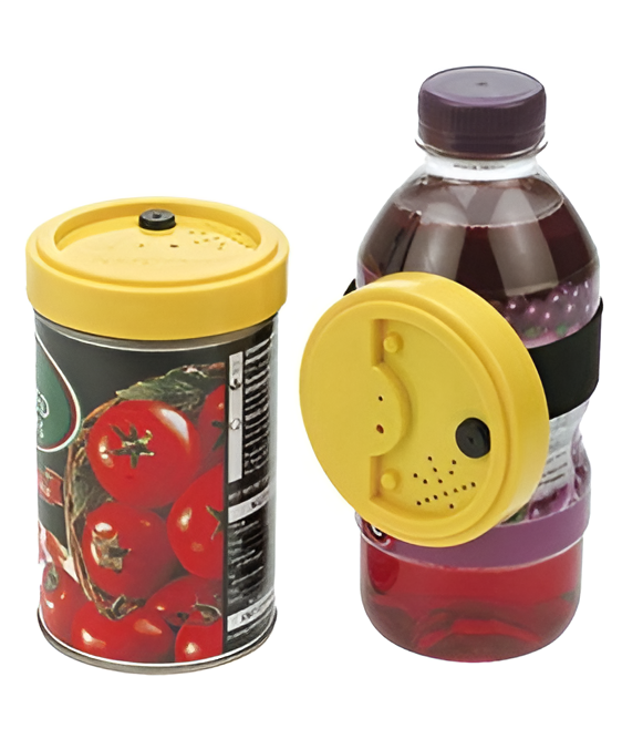 - Может крепиться к жестяным банкам или крышкам (кроме изготовленных из алюминия), а также к обычным контейнерам или пакетам с помощью самоклеющегося диска или специального ремня, которые входят в комплект.