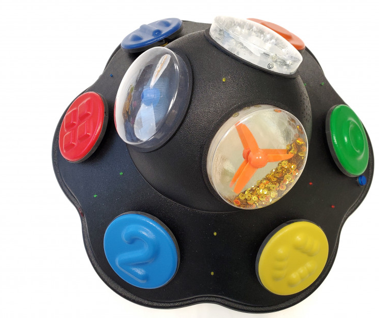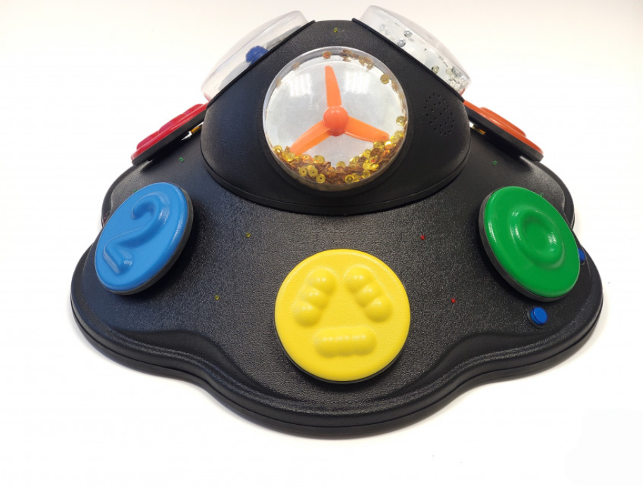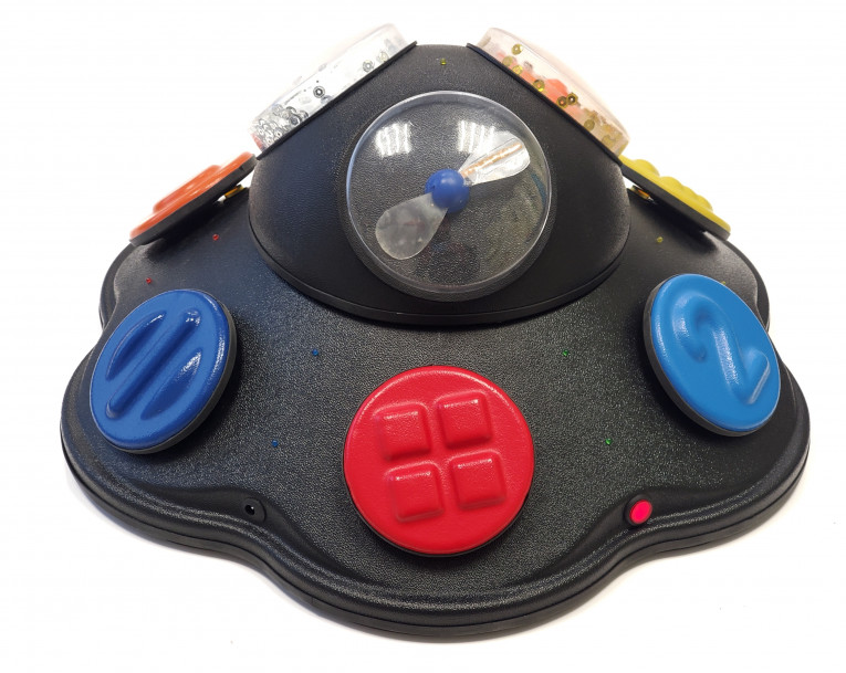 Игра «Настольный текстурированный тактильный центр» предназначена для детского общего развития и развития детей, имеющих проблемы со зрительным, тактильным, слуховым восприятием и коммуникацией. Представляет собой корпус сложной формы с текстурированными кнопками и прозрачными куполами, в каждом из которых есть вентилятор и лёгкие шарики или блестки разных цветов. Изготовлено из высококачественного ударопрочного пластика, имеет обтекаемые плавные формы без острых краёв и углов.