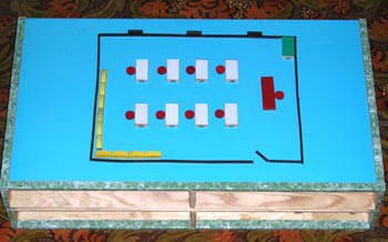 В комплект прибора входят магнитные полосы длиной 30, 60, 150, 300мм. Они также отличаются и по ширине: 4,5 мм и 9 мм Узкие полосы могут использоваться в качестве тротуаров, пешеходных дорожек в парке, тропинок в лесу. Широкие - в качестве проезжих дорог, просек в лесу , заборов при построении планов различных участков. Необходимо отметить, что полосы длиной 150 мм и 300 мм сгибаются, что даёт возможность строить кривые линии. Не рекомендуется полосы сгибать под острым углом.