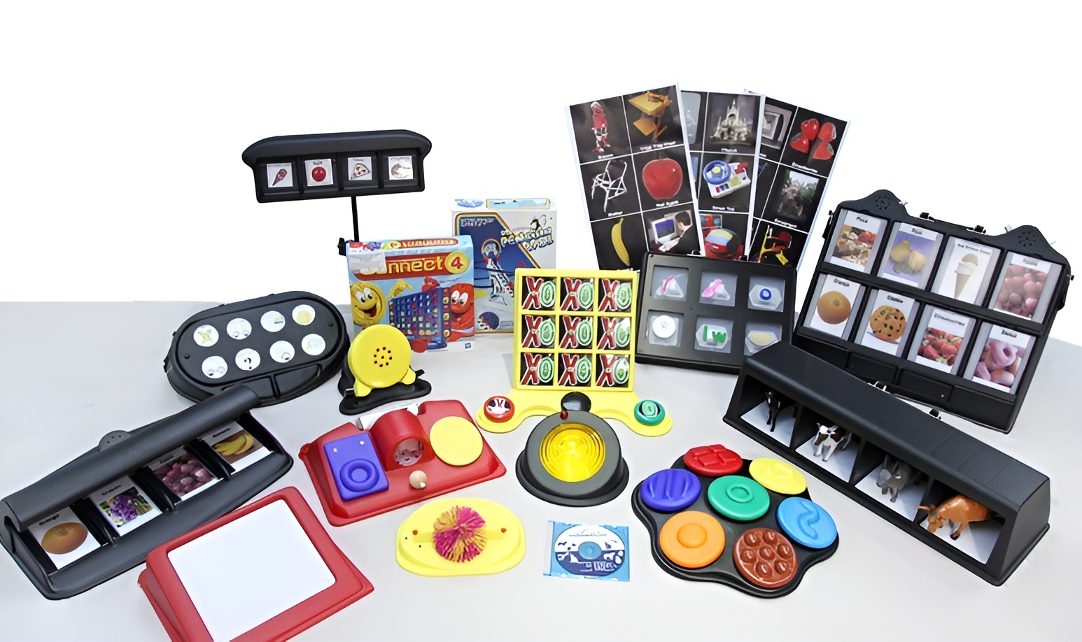 Набор состоит из адаптированных игр и специализированных коммуникаторов, разработанных для обучения и развития детей с нарушениями зрения. Набор полностью русифицирован.