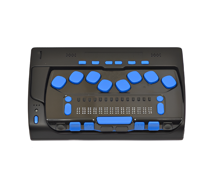 - Настраиваемый повтор клавиш для ускоренной прокрутки и панорамирования. Управление: 8-клавишная клавиатура в стиле Перкинс; кнопки NAV Rockers на каждой стороне дисплея, независимо настраиваемые для строк, предложений, абзацев или прокрутки вперед/назад; клавиши маршрутизации курсора; две фронтально расположенные клавиши для прокрутки; две клавиши для перемещения по строке вверх/вниз; две клавиши выбора; две клавиши SHIFT.