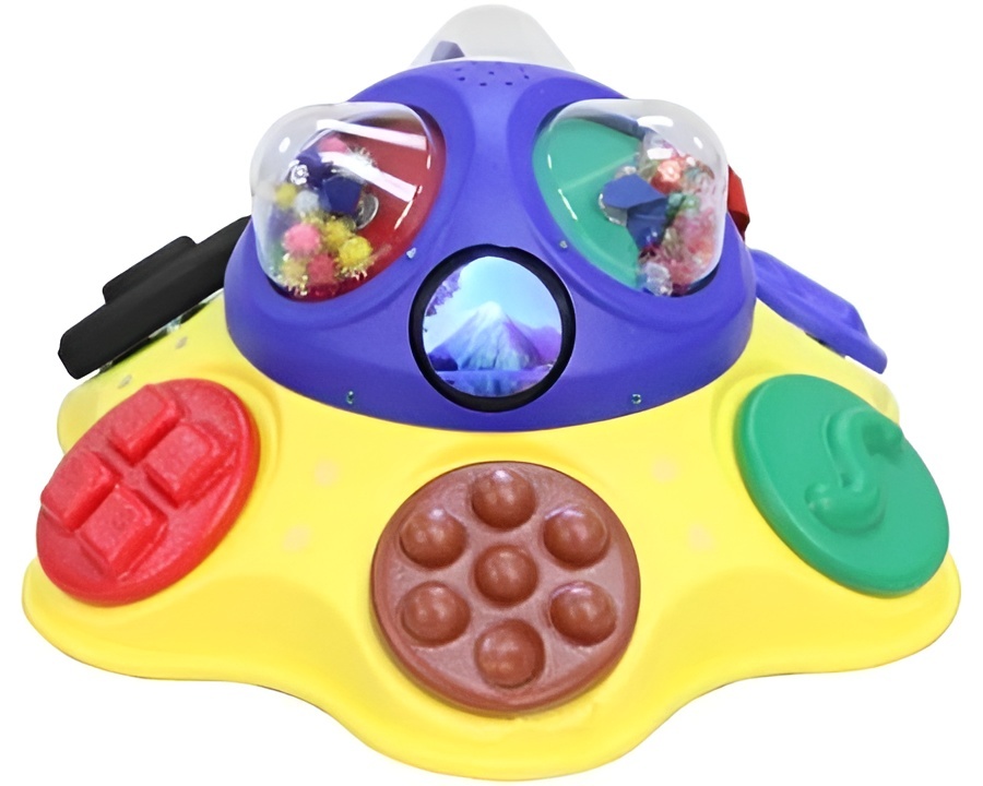 С центром могут играть одновременно несколько детей (основание игрушки сделано таким образом, чтобы его легко можно было вращать). Яркие цвета и световые эффекты данного развивающего центра являются хорошим стимулирующим инструментом для детей с нарушениями зрения. В данной игрушке есть регулятор громкости.