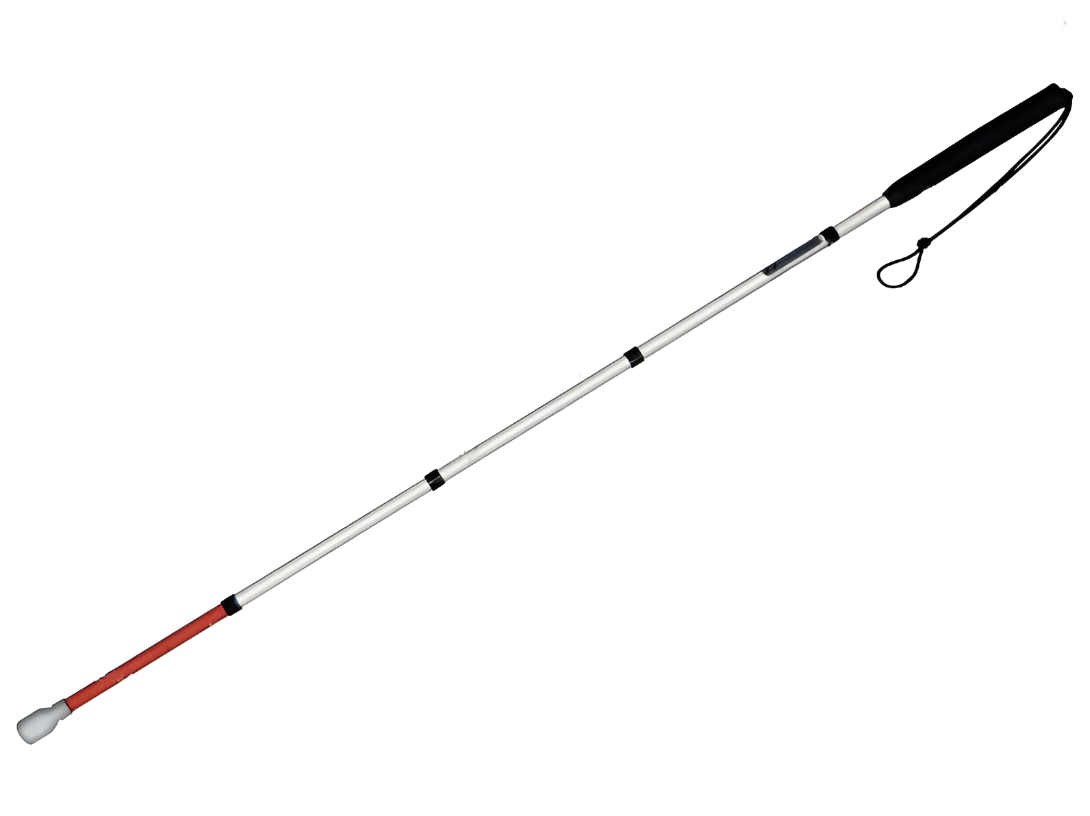 Графитовые трости имеют преимущество перед алюминиевыми, прежде всего, повышенной прочностью, а также большей лёгкостью. Данная трость имеет алюминиевые вставки и наконечник в виде цилиндра, вращающийся вокруг своей оси. Трость этого типа состоит из пяти звеньев белого цвета со светоотражательными элементами, чёрной ручки с резиновым покрытием и белого наконечника, соединённых двойным эластичным шнуром. Чёрные алюминиевые вставки в виде ободков в местах соединения звеньев трости и двойной эластичный шнур позволяют быстро складывать и раскладывать такую трость, а крепкие соединения между звеньями предохраняют её от поломок.