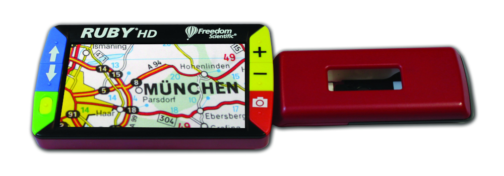 RUBY HD – это надежный, компактный и легковесный повседневный помощник для слабовидящих людей. Он имеет полноцветный экран 4,3 дюйма, обеспечивает увеличение до 13 крат и возможность быстрого чтения без размытия.