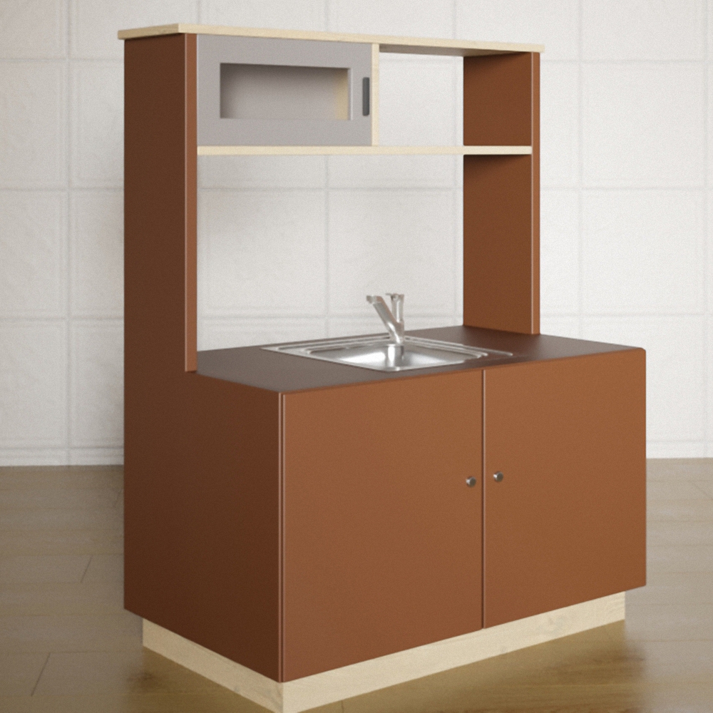 Детская кухня – отличный модуль для сюжетно-ролевых игр дошкольников. Ребёнок может играть с ней самостоятельно, в группе с другими детьми или при помощи взрослого – родителя, воспитателя или педагога. Кухня «Александра» имеет дополнительный верхний ярус – это позволяет разместить на ней большее количество предметов и сделать игру ещё интереснее. Металлическая мойка добавит реалистичности к игре и позволит маленьким девочкам почувствовать себя настоящими хозяйками. В закрытых полках нижнего яруса удобно хранить игрушечную посудку.