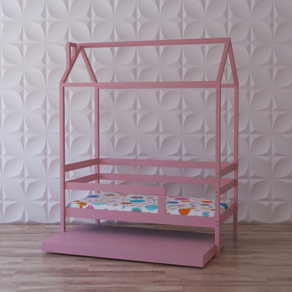 Кровать детская сделана из берёзы, изделия из которой отличаются повышенной прочностью, имеют интересный внешний вид благодаря фактурному срезу. Кроме того, берёза – один из наичистейших видов дерева. Односпальная кроватка окрашена в сизо-голубой цвет и имеет оригинальную и интересную форму объёмного домика с печной трубой. Комплект предназначен для оснащения групп ДОУ, развивающих центров, будет уместен и в использовании дома.