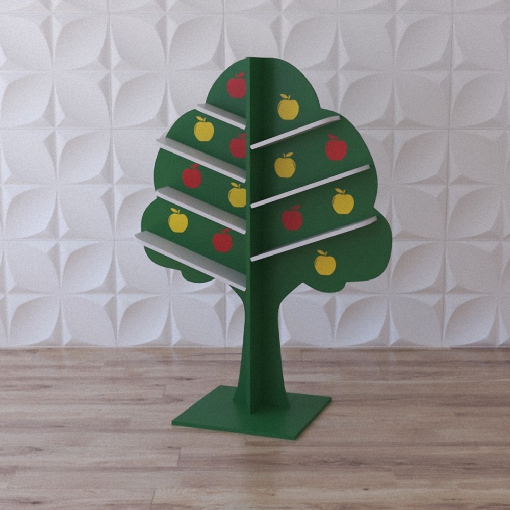 Экополка «Лесная яблонька» может быть отдельным элементом для хранения преметов или выступать как составляющий модуль набора экополок “Волшебный лес”, который может выступать в качестве игрового модуля для групп в садиках и яслях (как полочки для хранения игрушек).