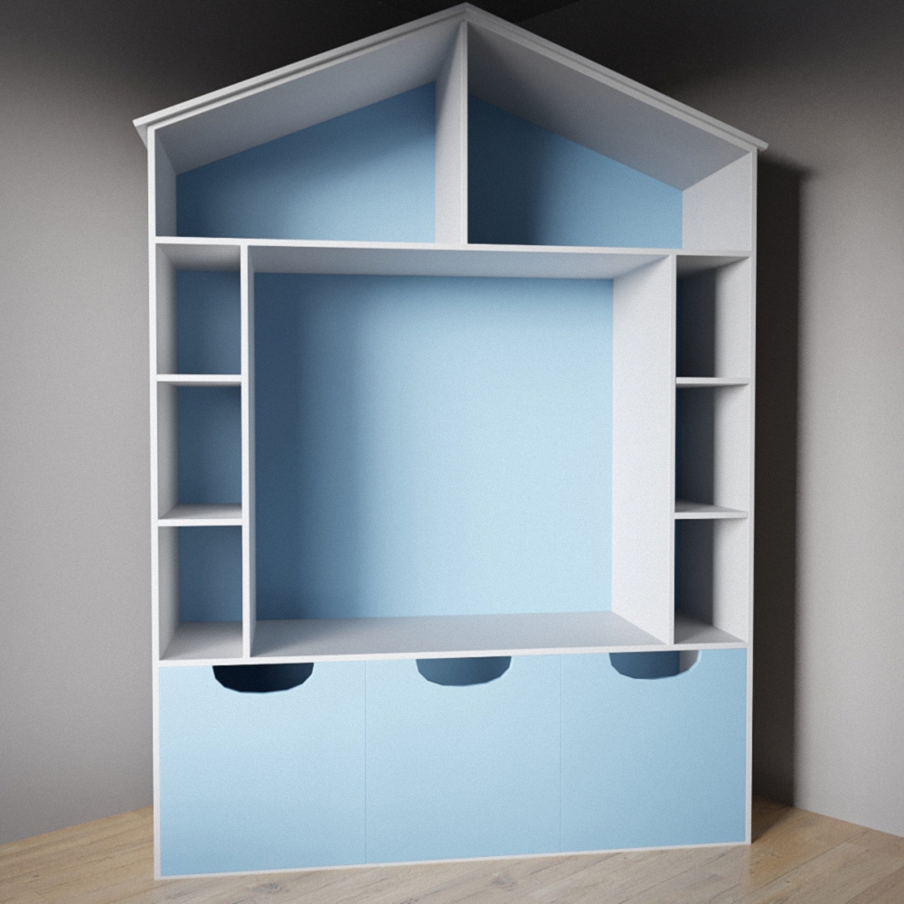 Детский стеллаж выполнен в нежных, ненавязчивых оттенках, что подходит как мальчикам, так и девочкам.