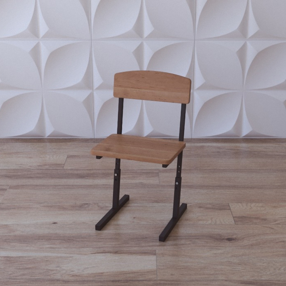 Стул цвета натуральной древесины имеет классическую конструкцию школьного стула, является модулем для обустройства различных учреждений. Растущая конструкция позволит использовать его намного дольше стульев, которые не имеют такой функции. Стул представленной модели нужен для оборудования классов начальных школ, кружков и секций (таких как кружок макраме, рисования или шахматный клуб).