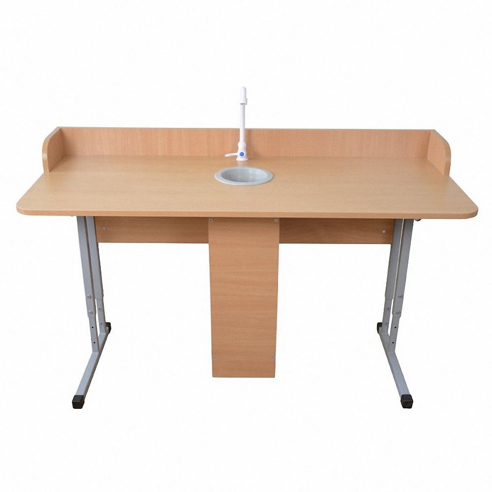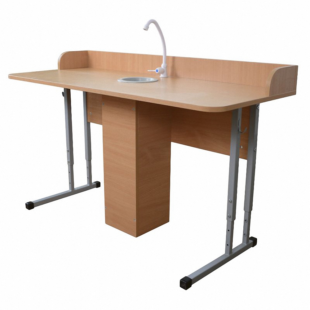 Предлагаем специальный вариант для проведения лабораторных работ. Модель оснащена защитными бортиками, краном для подачи воды и сливным отверстием. Такая парта удобная в использовании и подходит для кабинетов химии.