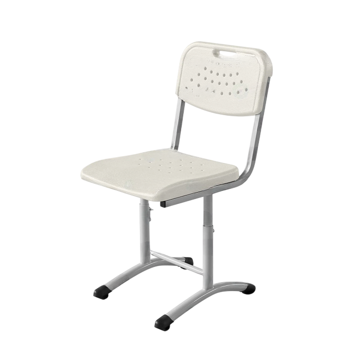 Школьный стул имеет стальной каркас, сиденье и спинку из утолщённого антивандального пластика.