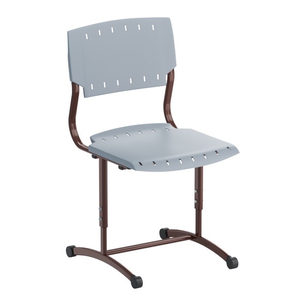 Стул ученический, регулируемый. Сиденье и спинка изготовлены из пластика методом литья. Спинка имеет изгиб в плане, все углы притуплены и имеют радиус закругления (габариты спинки 456х270 мм). Передний край сиденья имеет изгиб, все углы притуплены и имеют радиус закругления (габариты сиденья 456х410мм). Каркас стула состоит из двух подвижных опор и верхнего корпуса. Подвижные опоры выполнены сварными цельнометаллическими из плоскоовальной трубы и покрыты стойким полимерным покрытием. На свободных концах труб установлены заглушки из ударопрочных полимеров не повреждающих поверхность напольных покрытий.