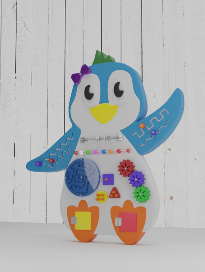 Эта модель бизиборда обладает широким разнообразием элементов, что положительно влияет на развитие ребенка. Более того, яркий дизайн развивающей игры привлекает внимание ребенка сразу, устраняя детское любопытство. Игра прекрасно подходит для кабинета психолога и логопеда, а также для детских учреждений. Игрушка прекрасно украсит любую детскую комнату, постоянно радуя ребенка. Бизиборд в виде пингвина выполнен из фанеры высшего качества, что позволяет наслаждаться безопасной игрой детям с раннего возраста. Шнурок или дверцы на бизиборде — это не просто элемент, а занятие, развлечение и обучение одновременно, благодаря которому малыш не замечает времени. Бизиборд привлекает внимание ребенка с первых минут. Ребенок развивается в моменте, прокачивая лучшие качества.