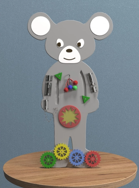 Бизиборд в виде мышки не только украсит любую детскую комнату, но и поможет развить умственные качества ребенка. Игра выполнена из качественных, а главное безопасных материалов.