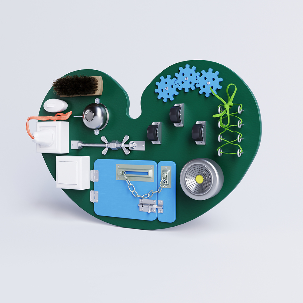 - Расскажите ребенку, как работают элементы бизиборда: открывающиеся дверцы с замками, выключатель, розетка с вилкой. Приведите примеры, где можно встретить подобные элементы в жизни. Таким образом, малыш становится самостоятельным, а удовлетворяет детское любопытство к бытовым вещам.