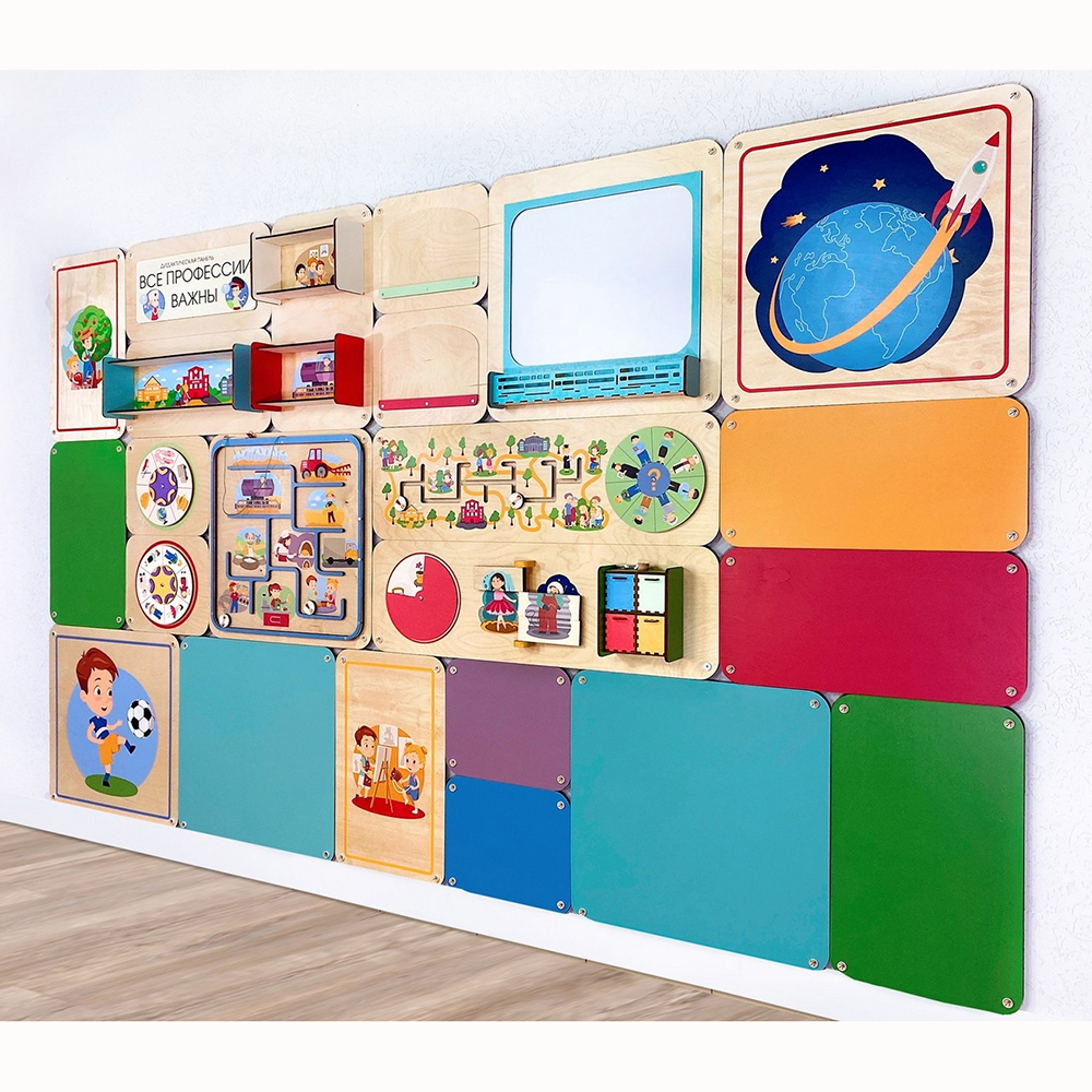Набор дополнительных модулей для комбинации с дидактическими настенными панелями. Отличное интерьерное решение для оформления помещений в едином стиле.