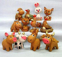 Авторские глиняные домашние животные. Набор из 12 штук. Выполнены из природного материала - глины. Высота фигурок 6-10см. Для проведения сеансов сказкотерапии и песочной терапии. Состав набора: кот, собака, курица, петушок, утка, кролик, бычок, коровка, овечка, поросенок, лошадка, ослик