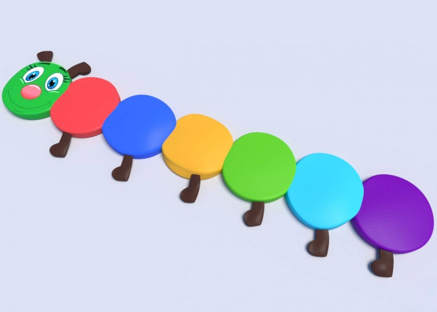 Тактильные ощущения познакомят ребёнка с палитрой цветов, помогут различать на ощупь текстуры и материалы, тем самым формируется определенные навыки и опыт. Дети изучают поверхности и формы не только глазами, но и ощупывая предметы. Прикосновения к мягкому кружку делают игру не только познавательной, но и приятной, успокаивающей. Познакомит малыша с частью нашего тела - лицом. По мордочке гусеницы можно начать изучать части лица. Ходить по коврикам или прыгать по кружочкам и учиться контролировать свое тело и движения. Профилактика плоскостопия.