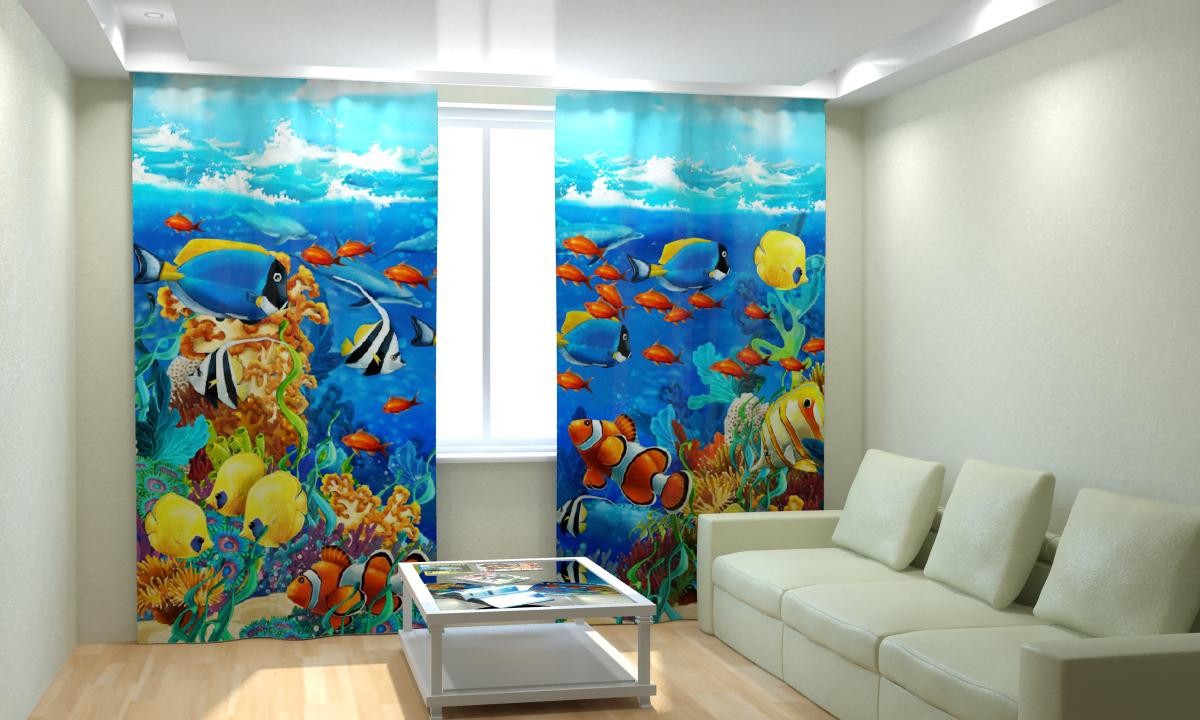 Комплект светонепроницаемых штор "Рыбки" - fgospostavki.ru - Салехард