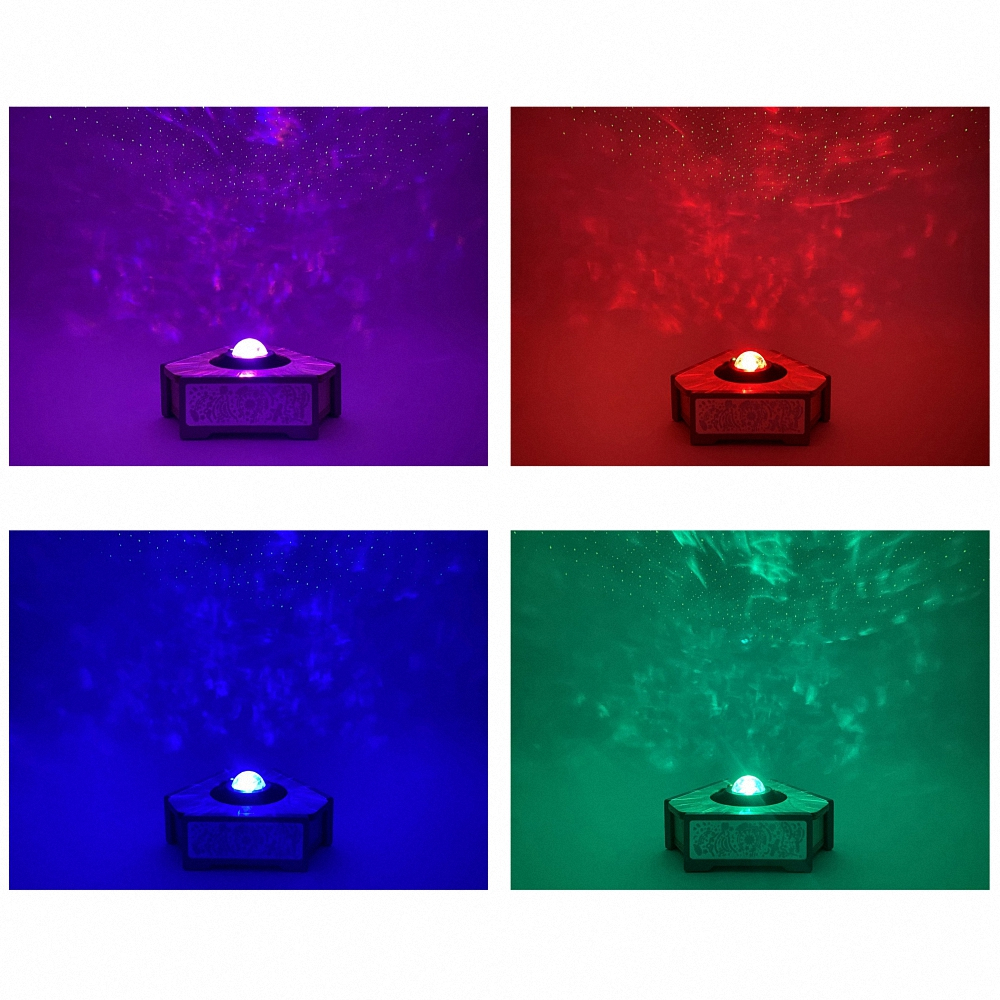 У проектора есть 10 режимов космических спецэффектов, которые можно переключать с пульта дистанционного управления. Яркость свечения настраивается в трёх разных режимах. Есть таймер автоматического отключения.