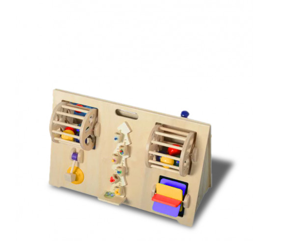 Дети все пытаются изучить, хватая предметы, потому что на наших руках находится множество рецепторов, которые передают информацию в головной мозг. Через тактильную среду происходит изучение мира и окружающего пространства. Активное движение пальцев стимулирует зоны коры головного мозга, которые отвечают за моторику и за речь. У детей память и процесс мышления происходят практически одновременно. Запоминание - это неосознанное действие, а вот припоминание - это мыслительные процесс. Деревянные шестерёнки очень удобны для маленьких пальчиков детей, благодаря им малыш лёгким прикосновением приводит весь ряд в движение. Ребенок сможет научиться крутить колесо и почувствует работу механизма. Это территория вашего ребёнка, на которой он может спокойно крутить и трогать предметы.