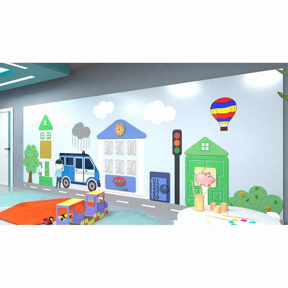 Передвигая одновременно обеими руками разнообразные элементы в тактильных лабиринтах, ребёнок в доступной игровой форме развивает работу обоих полушарий головного мозга, а игра с выключателем и сортером стимулирует мелкую моторику пальцев. Панель с цифрами познакомят ребёнка с понятием порядкового счёта, а циферблат – с понятием времени. Кармашки для дидактических бланков позволяют расширять функционал панели в любом направлении.
