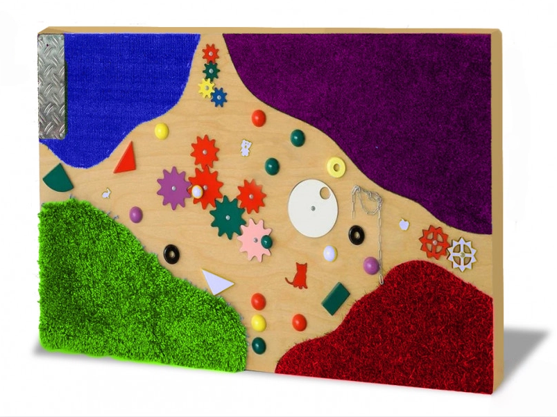 Тактильная панель на тему пощупай ручками - это не просто разные поверхности, а еще и комплекс профилактических мер. Большая доска, по краям которой находятся разные текстуры. Посередине находятся цветные шестеренки: они отличаются по размеру и все двигаются от легкого касания. Множество поверхностей разной структуры помогут познакомить ребенка с разными плоскостями на ощупь, научиться различать текстуры и материалы. Тактильная панель заинтересует как маленьких детей, так и постарше, а родителям поможет сохранить дом в целости и сохранности.