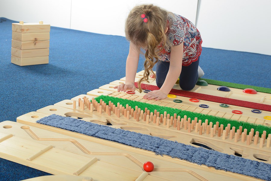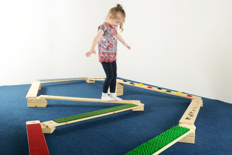 другом в разных вариантах. Хождение по ним учит ребенка держать равновесие. Поверхность тактильного комплекса выполнена из материалов разных фактур, что способствует развитию тактильных ощущений.