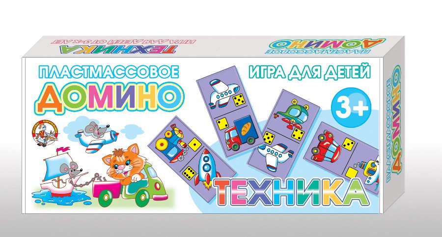 Домино представляет собой настольную игру, состоящую в поочередном выставлении прямоугольных пластинок, разделенных на два поля с изображениями разных видов транспортных средств.