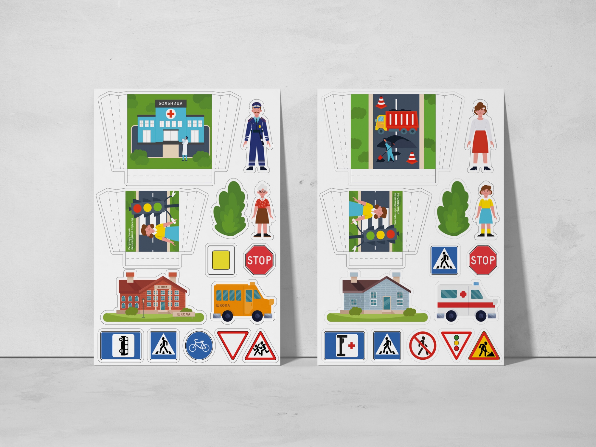 4. В комплект входят карточки с дорожными знаками, людьми, машинками
