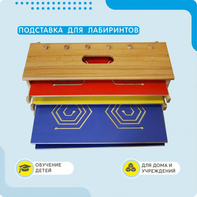 Комплект дидактических лабиринтов №1 состоит из 4-х разноцветных досочек, на каждой из которых размещены межполушарные тактильные лабиринты с различными рисунками. В комплекте также имеется подставка для удобства хранения и использования. Отлично помогает развивать межполушарные связи и мелкую моторику детей как на занятии со специалистом, так и в домашних условиях. Набор научит малышей решать задачи и принимать решения в игровой форме. Благодаря яркому дизайну и разнообразию лабиринтов, он заинтересует и занесет в мир увлекательных игр даже самых маленьких детей.