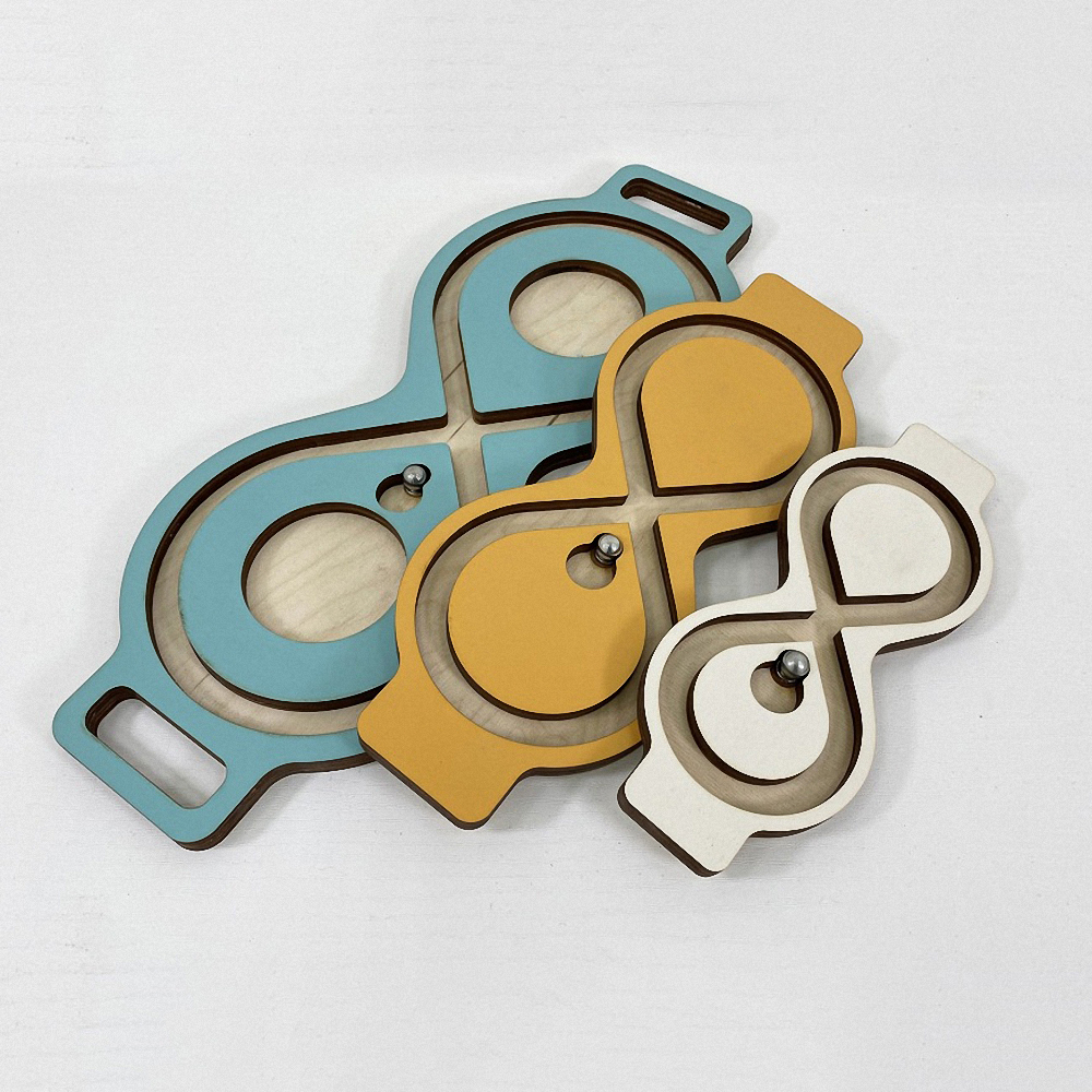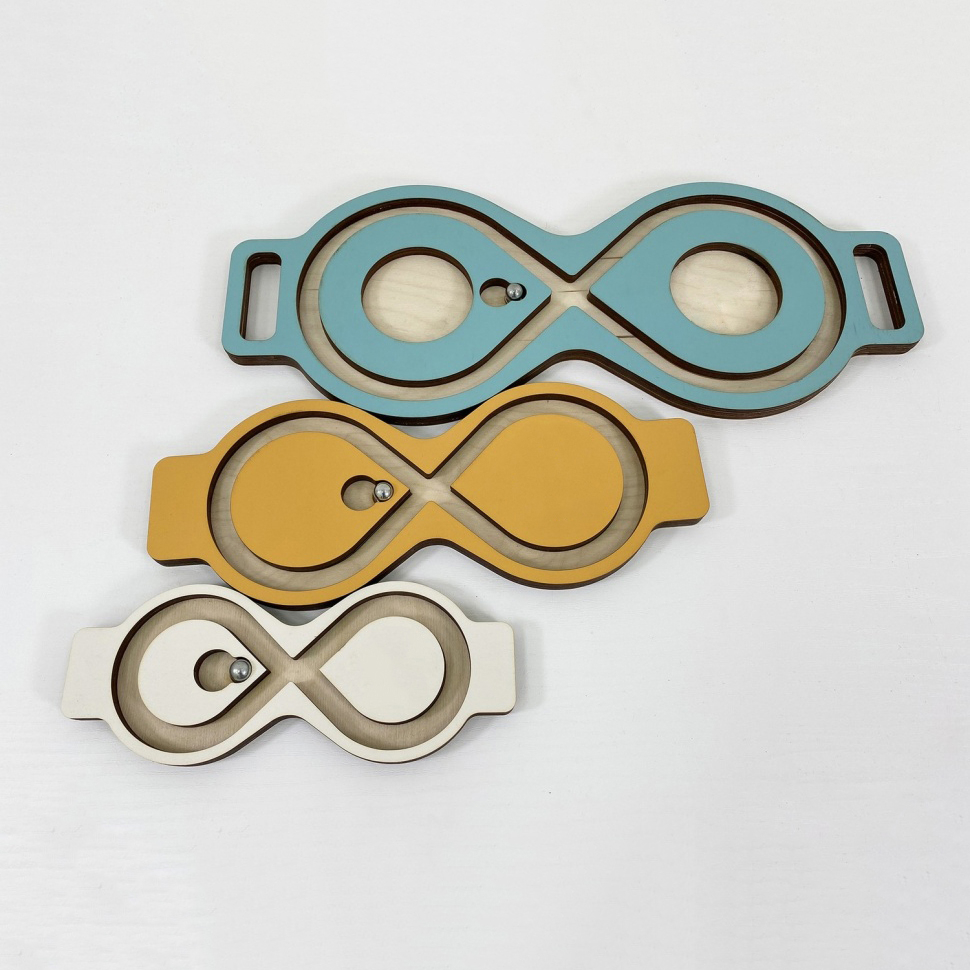 Балансир-лабиринт для развития мозга и снятия эмоционального напряжения. Представляет собой положенную набок восьмёрку с металлическим шариком, который можно катать, наклоняя лабиринт в разные стороны.