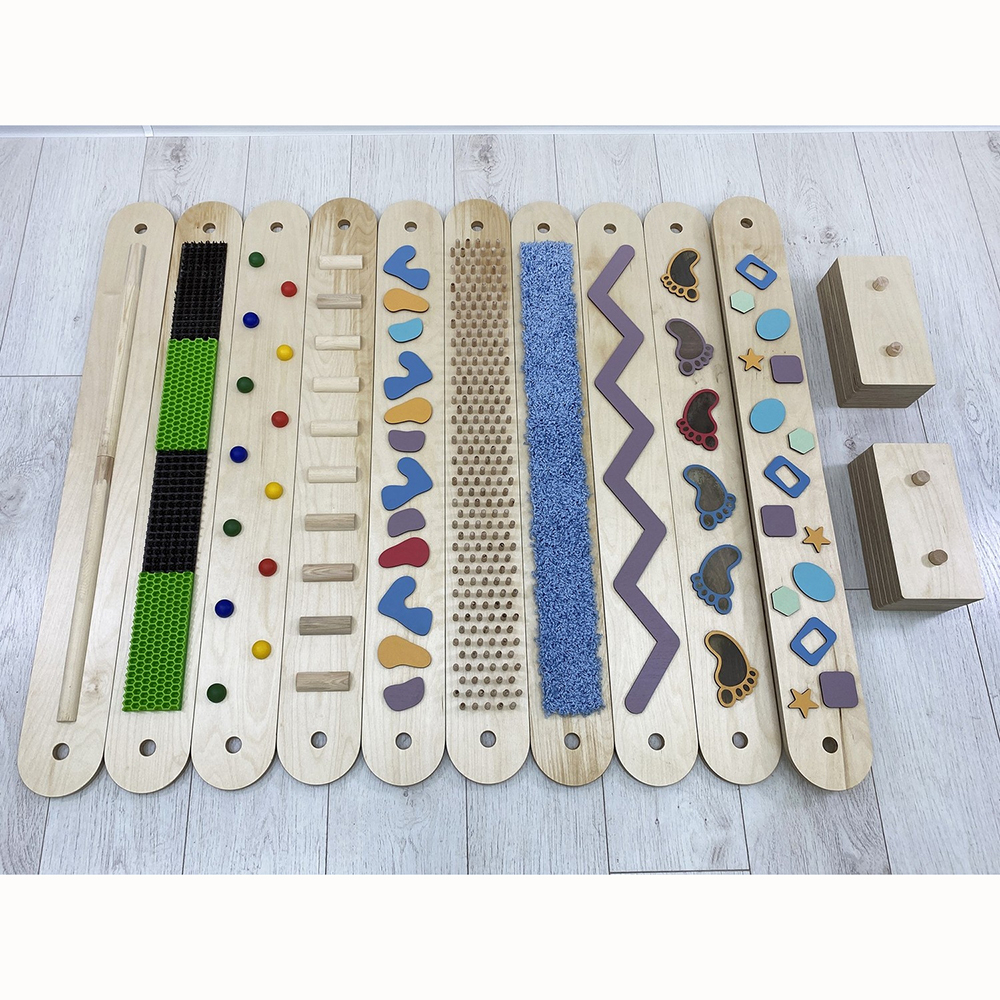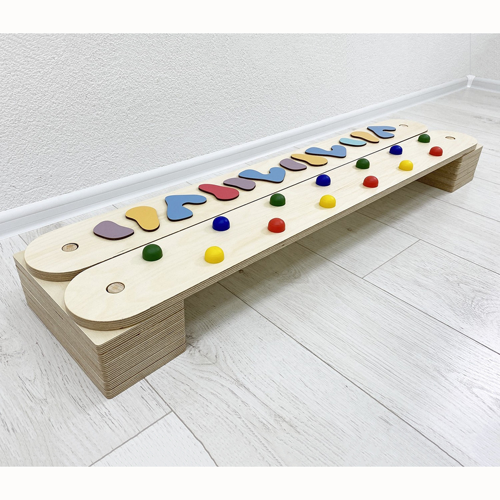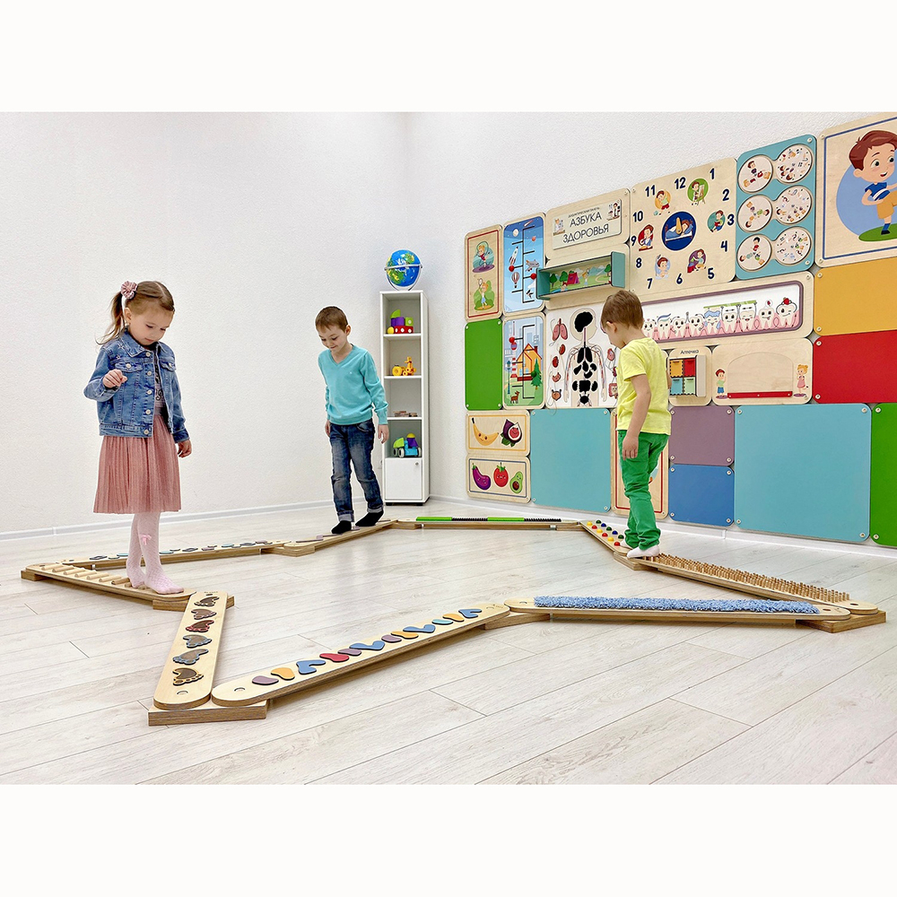 Игровое оборудование для развития равновесия и массажа стоп у детей. Из набора можно построить дорожки различной высоты и конфигурации с поворотами под разными углами, чтобы детям каждый раз было интересно заниматься.