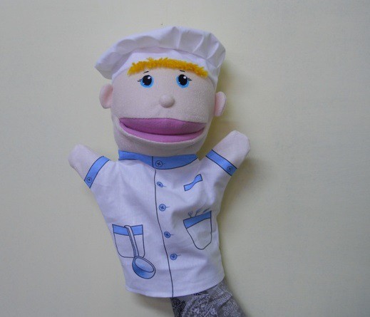 Эта кукла-перчатка легко надевается на руку, имеет подвижные органы артикуляции, которыми легко управлять.