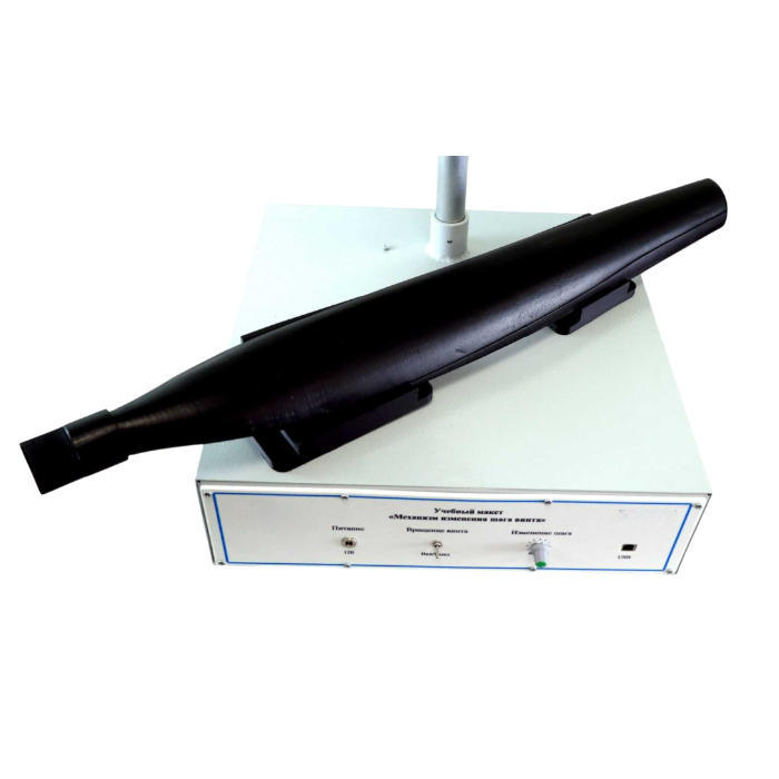 Действующий учебный макет «Механизм изменения шага винта» предназначен для изучения кинематической и конструктивно - силовой схем механизма изменения шага винта, а также наглядной демонстрации принципа его работы.